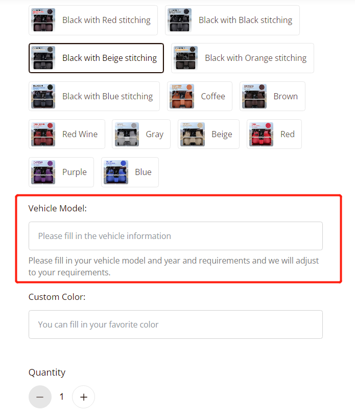 Color: You can specify the color you desire, and we will make the car mats accordingly at no extra cost.