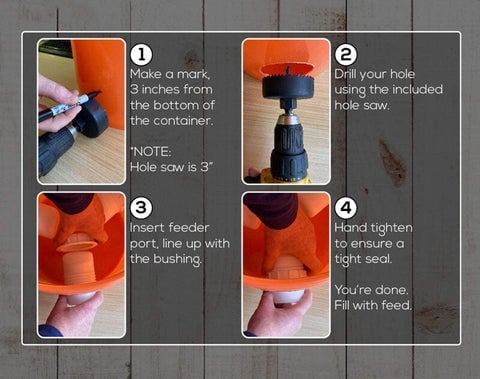 No additional hardware is required. This poultry feeder is already equipped with a 3.15-inch(8cm) hole saw, and you can install a three-port feeder in a matter of minutes.